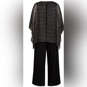 Avenue Evie Wide Leg Jumpsuit With Black and Gold Polka Dot Attached Chiffon Cape