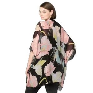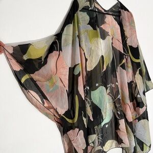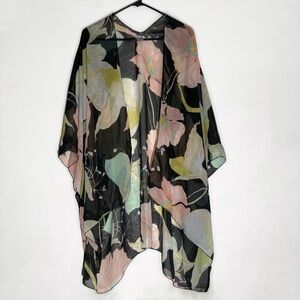 Avenue Floral Open Front Sheer Chiffon Kimono, Multicolor size OS