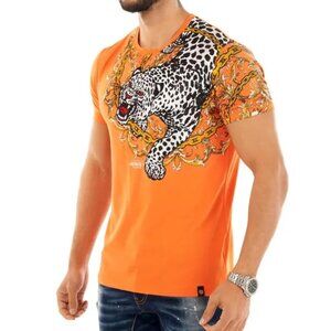 Avenue George V Paris Men's Graphic T-Shirt Leopard Orange Fitted Tee 2XL XL