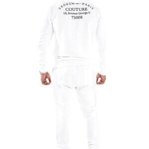 Avenue George V Paris Men's White Jugging Suit 2 piece set Rhinestone Tracksuit