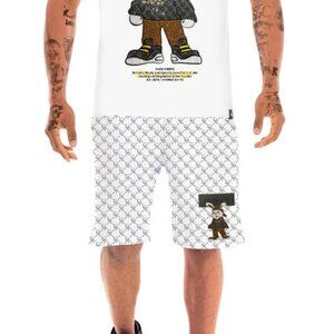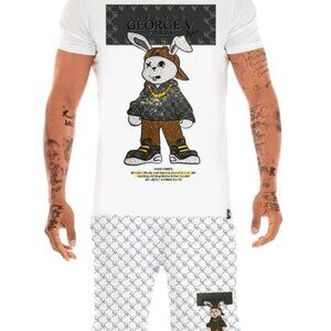 Avenue George V Paris Short Set Men's White 2 piece set Rabbit Rhinestone XL