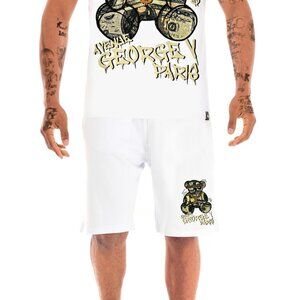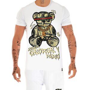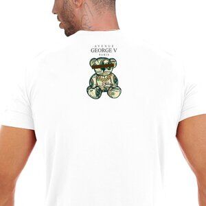Avenue George V Paris Short Set Men's White 2 piece set Teddy Bear Rhinestone