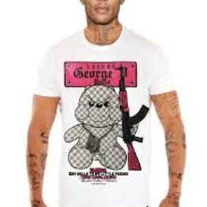 Avenue George V Paris T-Shirt Men's White Shirt Teddy Bear Rhinestone XL 2XL