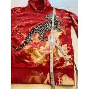 Avenue George V Paris men’s Red bleach art Leopard Hooded Sweatshirt S hoodie