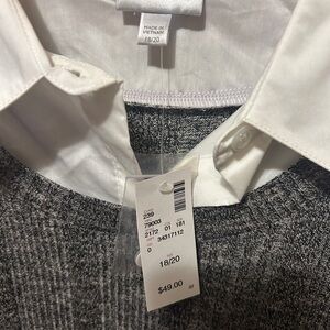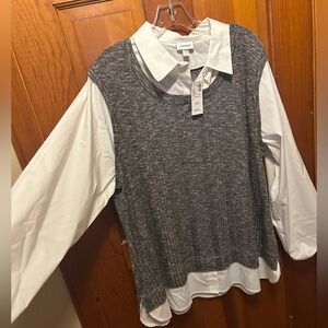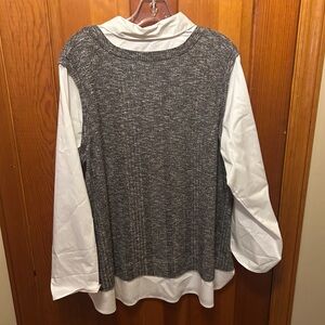Avenue sweater vest and blouse combo. Vest has a faux button down shirt collar, sleeves and shirttails attached. Tab rolled sleeves. Plus Size 18/20. Still has tags, never worn. I also have this listed in size 14/16
