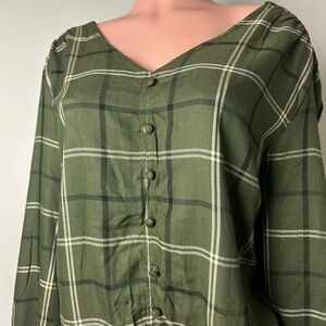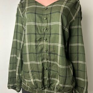 Avenue Green Boxy Button Down Shirt with Long Sleeves