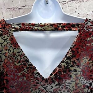 Avenue green and rust red semi sheer top