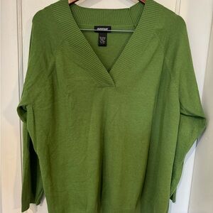 Avenue Green V-Neck Sweater Lightweight Knit