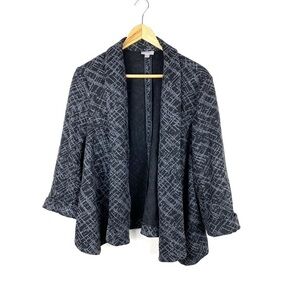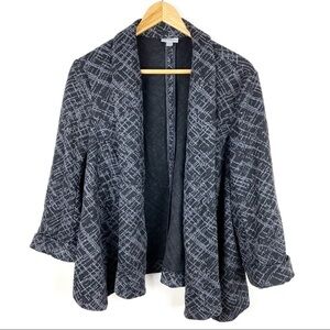 Avenue Jacket Blazer Size 14/16 Black Gray Long Sleeves Open Front Cardigan