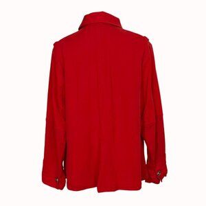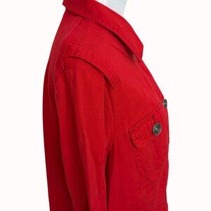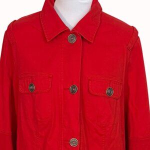 Womens Avenue Jeans Red Barn Style Button-Front Jacket Size 18/20 Cotton Blend Casual Lightweight Outerwear Medallion Button Front