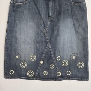 Avenue Jeans Denim Skirt 16 Blue Zip Front Pockets Boho Painted Design Cowgirl