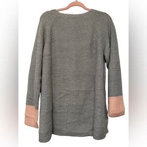 Level up your trans-seasonal wardrobe with the dynamic Color Block Lurex Pullover. Featuring a cable knit contrast, this gray knit is a versatile wardrobe favorite.