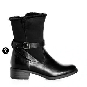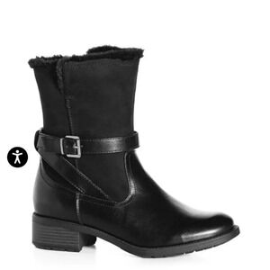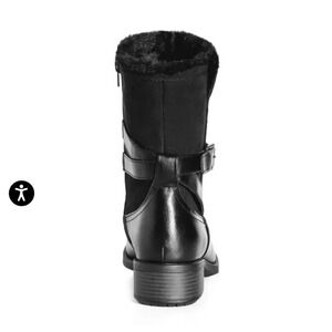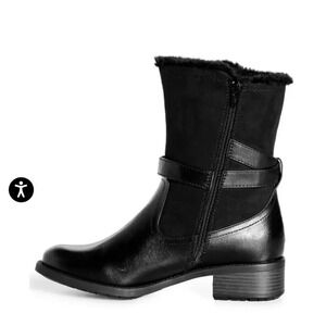This stylish boot is the perfect way to add a unique twist to your wardrobe. The faux leather and suede fabrication gives this boot a luxurious look, while the fur trim and wide fit make it extra comfortable.