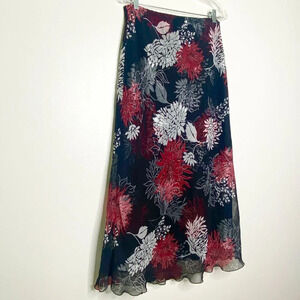 Avenue Maxi Skirt Plus Size 14/16 Stretch Waist Black Red White Floral Print