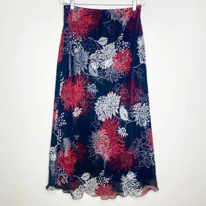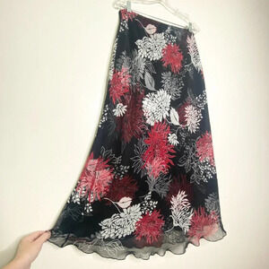 Avenue Maxi Skirt Plus Size 14/18 Stretch Waist Black Red White Floral Print