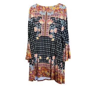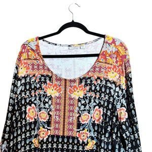 Avenue Midi Dress Womens 22 24 Multicolor Boho Artsy Art To Wear Scoop Stretch