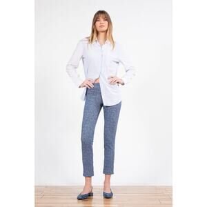 They’re done in a blue and white textured tweed, giving that subtle Chanel-inspired vibe that feels both timeless and easy to wear. The cropped straight leg and pull-on style make them effortless — perfect for work, dinner, or weekends when you still want to look put-together.