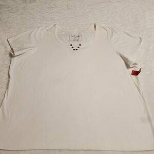 Avenue NWT Classic Henley Womens Short Sleeve White Embellished V Neck Plus Size