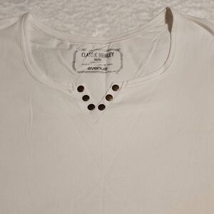 NWT Avenue Classic Henley women's plus size white shirt sleeve, v neck with embellishments size 30/32