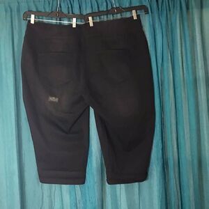 Black plus size stretchy pull-on cropped jean pants. New with tags. Please refer to pictures for best description and condition verification.