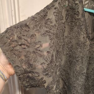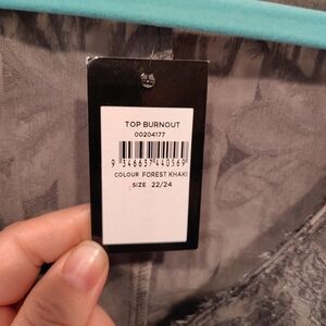Avenue NWT Forest Khaki Sheer Floral Burnout Top 22/24 Casual Work Event Artsy