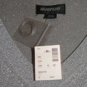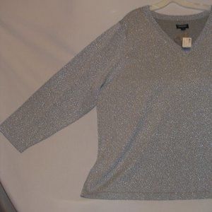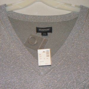 NWT Womens Plus 26/28 Avenue Long Sleeve Silver Metallic Sweater V Neck Tags