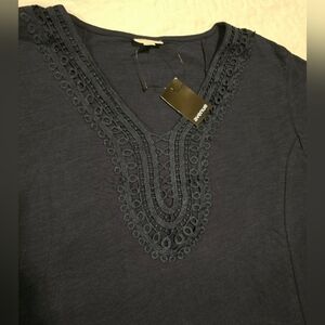 Avenue Navy Crochet Notch Neck Tee Blue NWT Plus Size 26/28