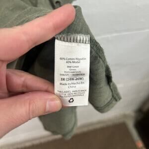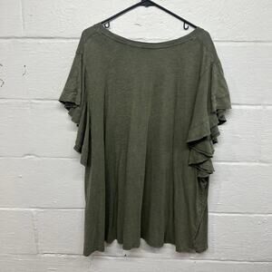 Avenue Olive Green Ruffle Sleeve Top Plus 3X Cotton Modal Quiet Luxury Chic