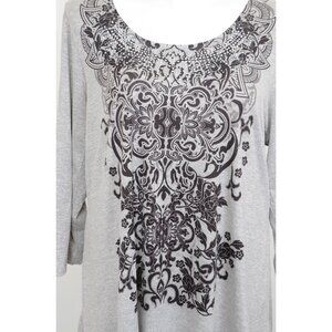 Avenue Paisley PLUS Size 18/20 (XXL) Artsy Studded Asymmetrical Scoop Neck Tee