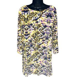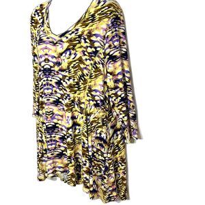 Avenue Patterned 3/4 Sleeve Top Multi Color Yellow Size 20