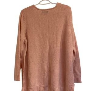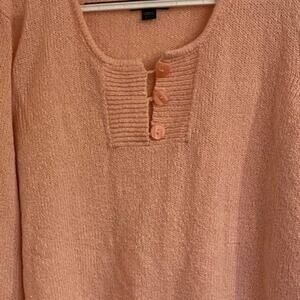 Avenue Pink Knit Sweater Size L Button Front Scoop Neck Long Sleeve Soft Texture