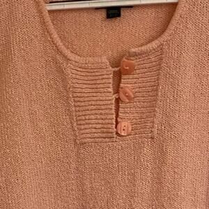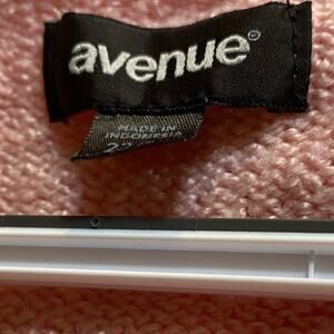 This cozy Avenue sweater in size Large features a soft pink textured knit with a feminine scoop neckline and three-button placket detail. The subtle ribbing at the cuffs and hem provides a classic, comfortable fit that flatters and layers beautifully for fall or winter wear. Lightweight yet warm, perfect for pairing with jeans, trousers, or a casual skirt. Gently pre-owned, in excellent condition with no visible flaws.