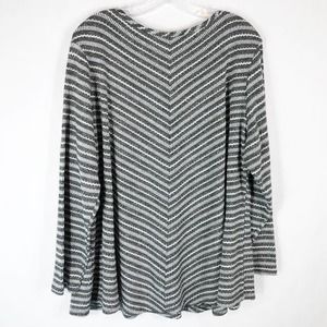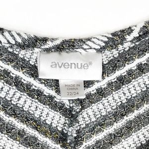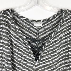 Avenue Plus Size 22 24 Sweater Top Gray Gold White Striped Lace Up V Neck 1272