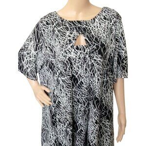 Avenue Plus Size 26/28 Dress Womens Black White Abstract Print Keyhole