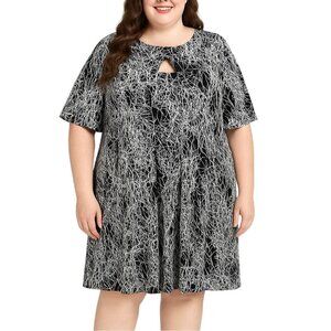 plus size dress, keyhole dress, Avenue dress, abstract print, back zip dress, women's clothing, short sleeve dress, casual wear, elegant plus size, comfortable dress, polyester dress, size 26/28, black and white dress