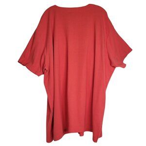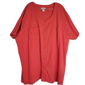 Avenue Plus Size Coral Button Front Short Sleeve Tunic Top Knit Blouse With Pock