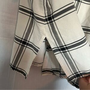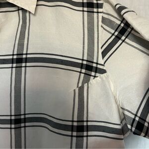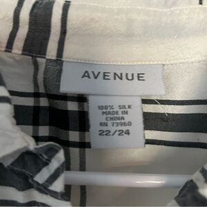 Avenue Plus Size Cropped Silk Button Up Plaid side vents sailor collar Slubbed