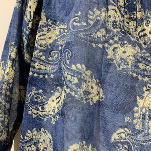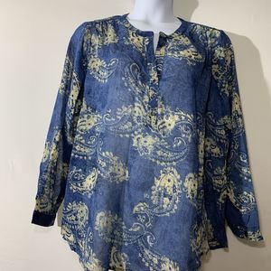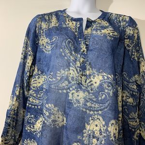 Avenue womens size 22/24 sheer blouse. Blues and beige. You will need a cami under this blouse. New
