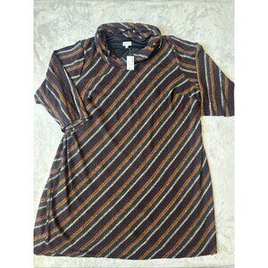 Avenue Plus Striped Sweater Dress Cowl Neck Rust Burgundy 30/32 4X 5X