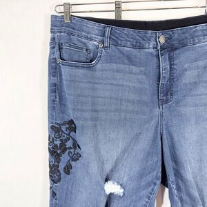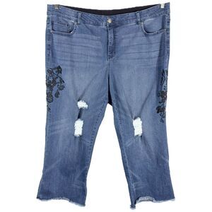 Avenue Plus Sz 22 Jeans Blue Embroidered Floral Distressed Elastic Stretch 1500