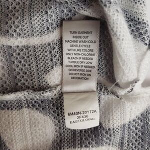 Striped border trim at hem and sleeves; lightweight knit feel with a semi-sheer look; pullover style.