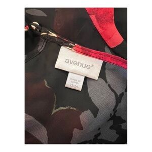 Avenue size 22/24 red and black floral 3/4 sleeve pullover top. The material is 100% polyester and machine washable. Excellent pre-loved condition. Approximate measurements are photographed in the listing.