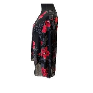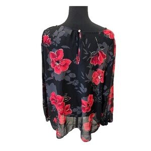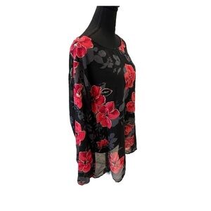 Avenue Red Black Floral Semi Sheer Top 22 / 24