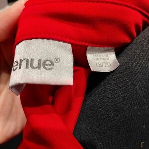 Avenue Red Ruffle Front Button-Down Shirt