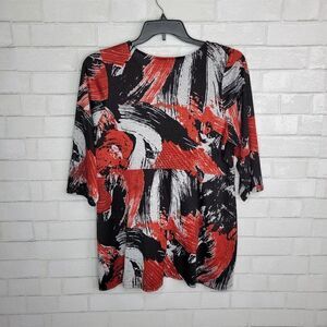 Avenue Red Black Gray Abstract Paint Stroke Tunic Blouse