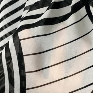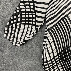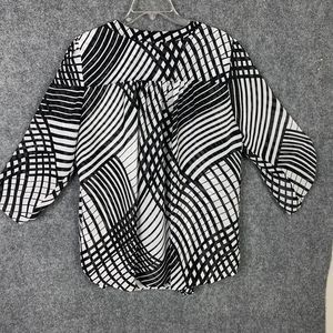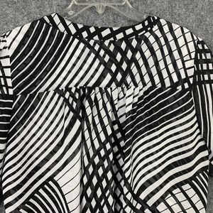 Avenue Semi Sheer 1/2 Button Blouse Women 14/16 B&W Pattern 3/4 Sleeve Airy