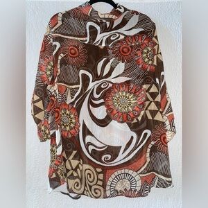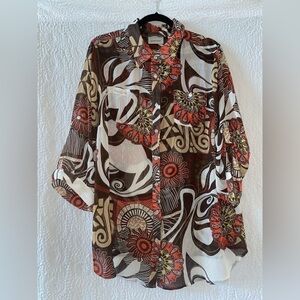 Avenue Sheer 3/4 Sleeve Button Down Top