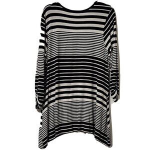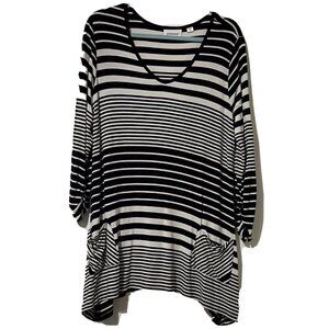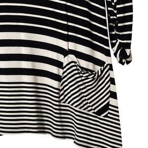 Avenue Size 14/16 Black & White Striped Asymmetrical Tunic Top With 3/4 Sleeves