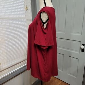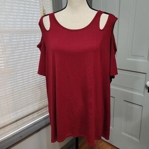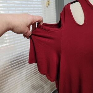 Avenue Soft Cold Shoulder Cutout Red Swing Tee