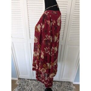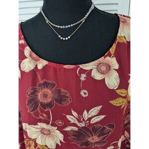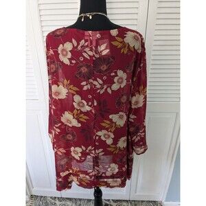 Avenue Studio Top Women Sz 30/32 Floral Short Sleeve Burgundy Chiffon Blouse NEW